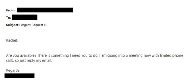 - To foil verification, scammers prevent an employee from calling back to the boss by claiming that he or she is with limited phone coverage or in a meeting (see the following screenshot)