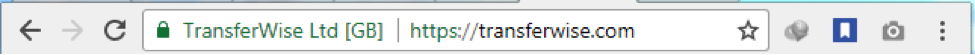 To acquire a digital identity certificate, the user’s machine should initiate a CSR (Certificate Signing Request). For example, when a user types www.transferwise.com on the browser, it automatically redirects him/her to https://www.transferwise.com, which is secured via VeriSign certificate. The browser shows indicators for secure websites. Refer to the Figure below, which is taken from Google Chrome, for an example. It shows a padlock in the locked position to indicate safety and the address bar with green text.