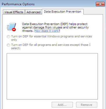 Visual Studio also provides a Data Execution Prevention (DEP) option during compilation in case of not disabling it at the operating system level.