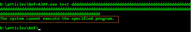 After finishing with all the necessary configuration or BOF attack thwarting option enabling, run the program and supply some bogus argument beyond the buffer limit. The operating system will issue a run time buffer overflow exception as follows: