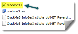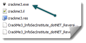 Our target, which is a managed module, is "CrackMe3-InfoSecInstitute-dotNET-Reversing.exe" (link to download in references section), is presented like this: