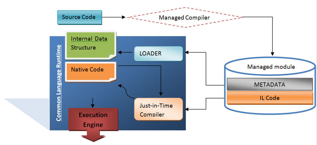 Based on this, we can say that the two principal components of a module are metadata and IL code; the CLR system is subdivided to two major subsystems which are the "loader" and the just-in-time compiler.