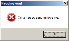 IL_0000: ldstr "I'm a nag screen, remove me."