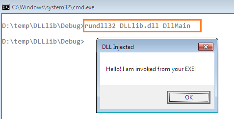 The rundll32.exe would execute the DllMain method of the DLLlib.dll by showing the message box and encryptCrack.exe consequently. The DLL file typically doesn't have an entry point, so it is not possible to directly execute it, even if we implement the message box invoking logic. Hence, we are using here, the DllMain method as an entry point of this DLL because we intend to show a message box or execute another .exe file from the DLL itself through this code.