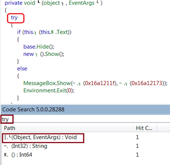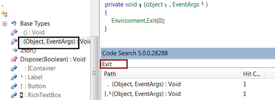 We have obtained some point of interest earlier from our thorough analysis. Now, we have to perform a search operation in the assembly on the basis of such crucial points by using one the CodeSearch add-on of the reflector. Make sure that the CodeSearch add-on is properly configured in the reflector and open it. Now perform the following searches as:
