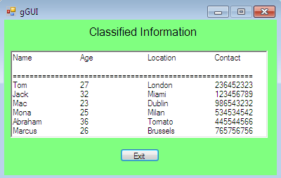Now, run this patched exe file, as usual, an authentication mechanism is opened and it asks to enter the password. Don't worry, enter any raw value and hit the Logon button. Bingoooooo!!!! We have bypassed the password limitation, now we can access the classified information which was supposed to available only for authenticated users. So, this is how we can reverse engineer an obfuscated executable by applying an effective analysis approach, even if we don't know the password, or the source code of this exe is obfuscated.