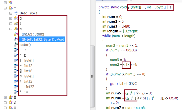 Perhaps Reflector doesn't fit in such circumstances. Let's try another disassembler, such as ILSPY. Same result, it will also decompile or yield C# source code, but in obscure constructs as follows: