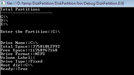 Console.Write("nEnter the Partition::");