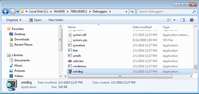 After downloading and installing WDK, the WinDbg will be located in the C:WinDDK folder as seen on the picture below.