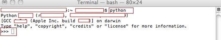 If you are a Linux or Macintosh user, chances are high that you don't have to install python, since it comes pre-installed for Macintosh by Apple and by concerned vendor for most Linux distro. To check if Python is installed on your system, launch the command prompt and type "python", if python is pre-installed, we should be able to see the interpreter getting launched as shown in the following screen shot: