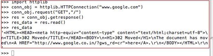Before using a library, we need to import it. Since in this case, we are going to use httplib library to send HTTP Requests and receive the responses back, we need to import it.
