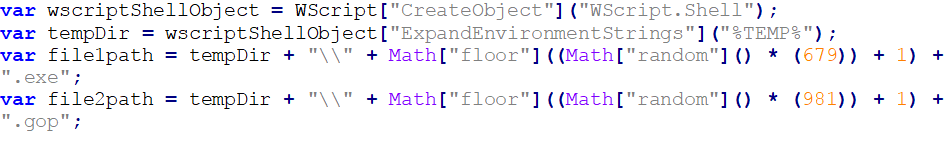 In the deobfuscated version I quickly spotted some useful IOCs that can prevent this threat to spread (and also to detect the threat once run), like for example the two files .exe and .gop dropped on the disk in the %TEMP% folder:
