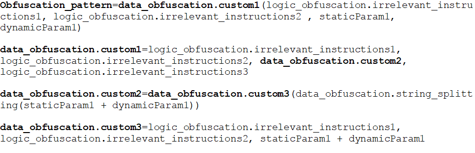 The chaining of one or more obfuscation techniques will create an obfuscation pattern.