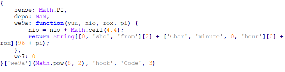 Recently I had the opportunity to analyze a js dropper that used some custom obfuscation function that obfuscates a common string splitting obfuscation technique (String.fromCharCode) and this needed dynamic parameter to execute properly in turn. It also has encoding obfuscation for the variable names, and the custom obfuscation function contains a lot of junk code.