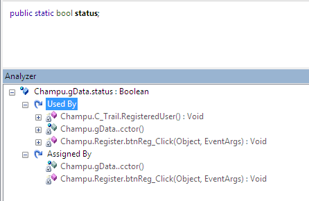 It is rather complicated to determine actually whether this class value is consumed or linked with other modules. We can also figure out such information by Analyzer, which virtually stated that a gData class member is used by both C_Trail and Register class as follows: