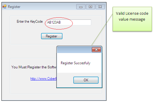 When we click over the Register button, another class Register is called, from where we can get the license key information. This class only contains a button click method as follows: