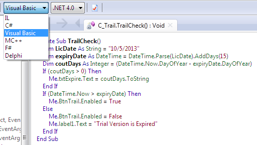 With .NET, Reflector shows the source code in C# by default. Some programmers aren't proficient in the C# language. So we can instantly change the assembly source code into another .NET supported programming language such as VB.NET.
