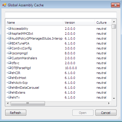 Sometimes we need to look at the global assembly cache, the repository of all .NET assemblies. We can open the GAC in Reflector as seen below.