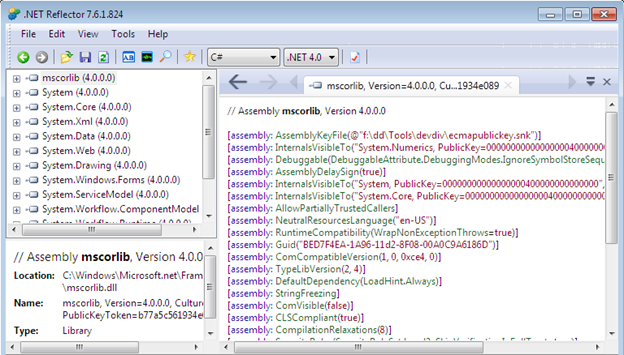 NOTE: Apart from such it advantages and features, I would like to address a common misconception that the Reflector is not able to edit .NET source code or opcode in any manner. We can't save as assemblies like other dissemblers, such as CFF explorer, IDA pro or Ollydbg. It just decompiles .NET assemblies. When it comes to editing .NET binaries, we need to import some sort of open source add-on into the Reflector IDE. We're provided with other useful features, such as editing hex code, and opcode. We can put our modifications into another file with different name.