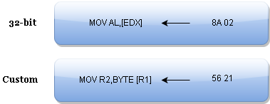 The task of reverse engineering a virtual machine protection would be easy of the architecture that it executes is known to us. Thus, it would take a small amount of time to search for the opcodes in the architecture instruction set reference. Sadly, most of code obfuscators today use a custom instruction set. In other words, each instruction is given a custom opcode (often chosen at random) and custom format that obliges the reverse engineer to manually decode each instruction and that's tiring. For the sake of example, let's look at the difference between the 32-bit x86 instruction set and the custom instruction set we're going to work on in this article: