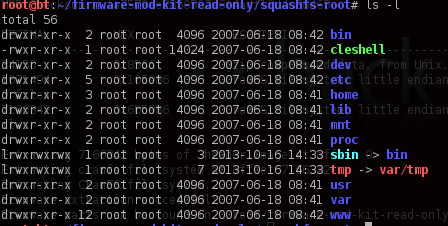 This toolkit contains various tools, such as unsquash_all, uncramfs_all, extract-sh, build-firmware.sh, firmware-modification-kit.sh, etc., for different type of activities. Let's try to extract files from the above filesystem, firmware.squash. We'll use a tool called unsquash_all.sh, as it's a squash filesystem: