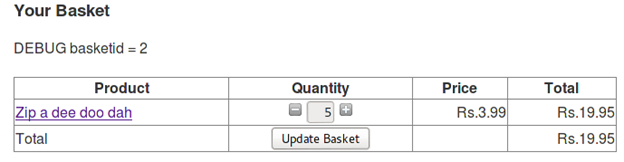 "basket.jsp" is a page that responds with debug information when appending "debug=true" to the URL http://10.0.0.2:8080/bodgeit/basket.jsp?debug=true
