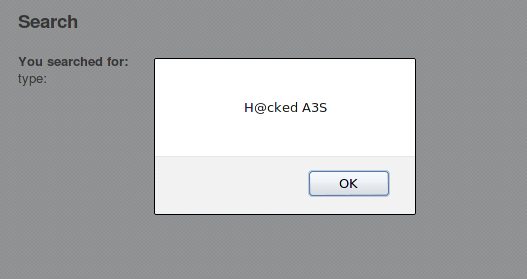 Now input the search string as: <script>alert("H@cked A3S")</script>