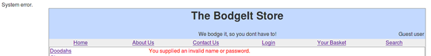 We can confirm that our input broke the query because the "System error" message is shown at the top of the page on submission.
