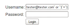 [sql]select * from users where username='tester@tester.com'' and password='tester'[/sql]
