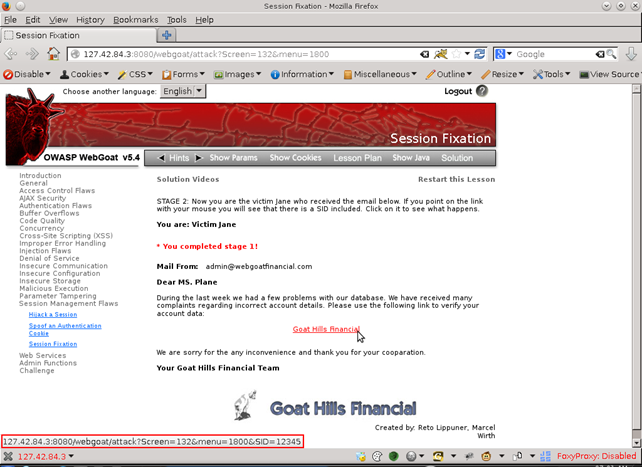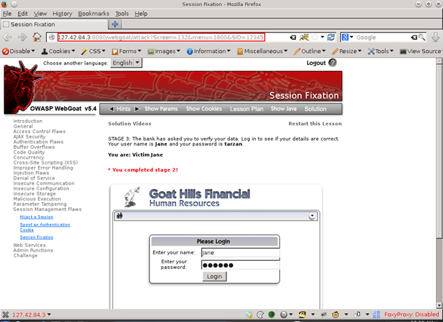 3. Session Fixation Lesson from WebGoat