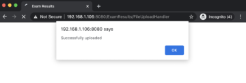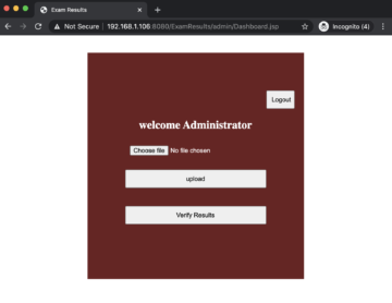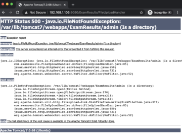 This error gives a hint that the application is trying to upload the file into /var/lib/tomcat7/webapps/ExamResults/admin folder, which is the current directory for us. Since the filename is blank, an exception is thrown, which was not handled by the developer.