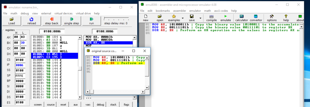 Figure 18: Contents of registers AX and BX after the XOR operation is executed