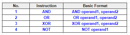 Table 1: Logical Instructions and their basic formats