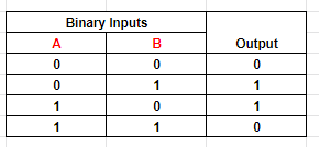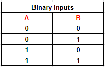 Table 2: Possible binary states for two inputs