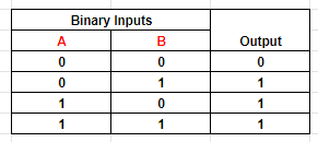 Table 4: Output of OR logic with two inputs