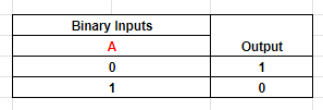 Table 7: Output of NOT logic with a single input