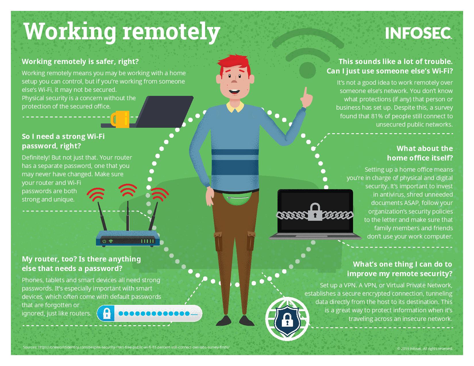 These common-sense steps will make you look like a security pro. Infosec has built a free Remote Working Awareness Kit full of posters and email templates designed to help you spread the word to your colleagues and teams. Good luck and stay safe!