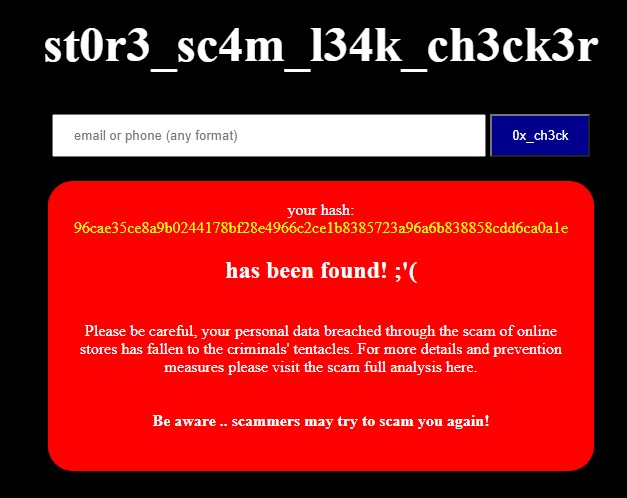 In that way, a leak checker tool was developed. This tool can be used by the victims of this scam and users, in general, to validate if their secrets have fallen into the criminals’ tentacles. Also, pointing out criminals are using data collected in these campaigns to conduct spearphishing waves and, thus, exposing real data (PII) in the messages to lure victims.