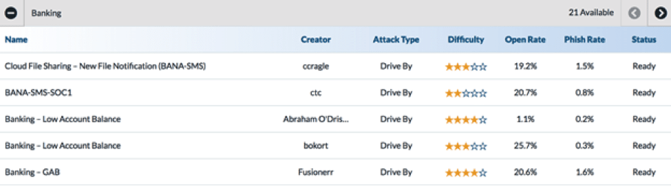 PhishSim makes it very easy to run a test on your employees. We have an Email Template Library that cover a wide range of standard phishing messages. These include templates created by InfoSec Institute as well as those from our user base. They are grouped into subjects such as Banking, Corporate Communications, and even Highest Phish Rate.