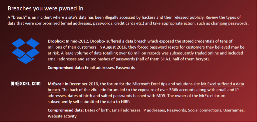 You can check if you have an account that has been breached on the haveibeenpwned website.