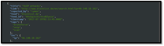 Using Cymon’s API, we were able to query for more information from this source. We used the following curl command to achieve our results:
