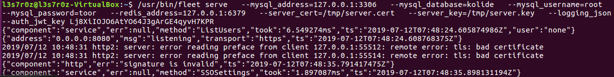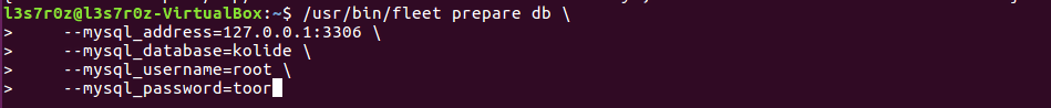 Before you can run Kolide, you need to ensure that you have prepared the database. This can be done using the command “fleet prepare db” as shown below: [CLICK IMAGES TO ENLARGE]