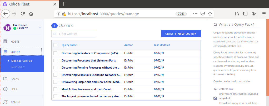 Figure 11. List of osquery queries within Kolide