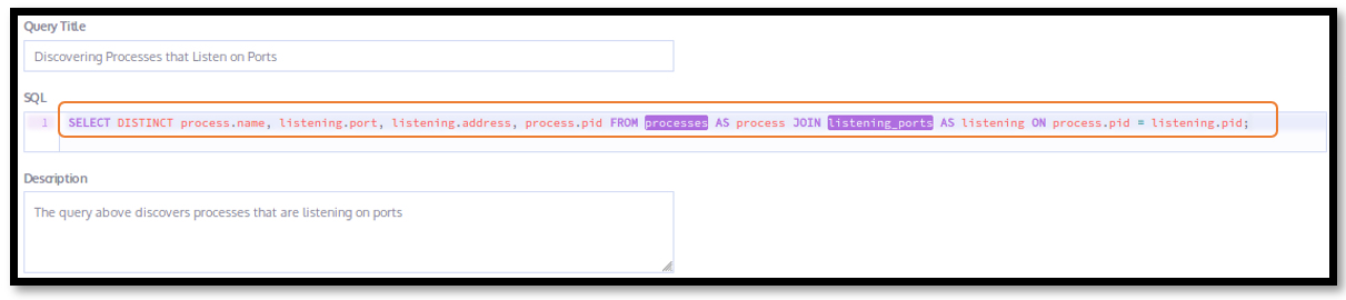 Figure 16. Building the query to discover listening processes
