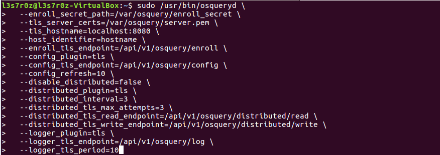 Do not forget to run your osquery, or else once inside the Fleet management console, your osquery install will appear offline. We launched our osquery instance as shown below: