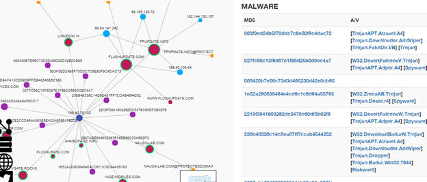 It shows the analysis of an MD-5 hash; the information reveals its source IP, domains, and the other associated hashes. These signatures represent the malicious file that should not run on your technology infrastructure.