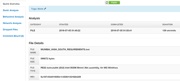 Use malwr.com for detailed analysis: