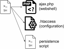 The initial script observed in Figure 2 installs an obfuscated PHP web sell on the server side, downloads additional scripts, and schedules daily tasks to re-infect the target machine. Palo Alto provides the high-level diagram of this campaign with the following schema.