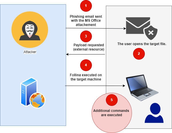 - Crooks start a new phishing wave and send an email to lure the victims with an MS Office file containing the exploit.