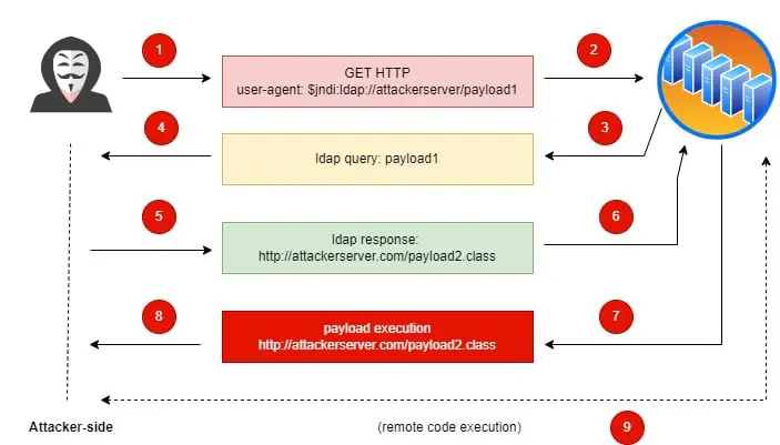 Figure 2: High-level diagram of Log4shell vulnerability.